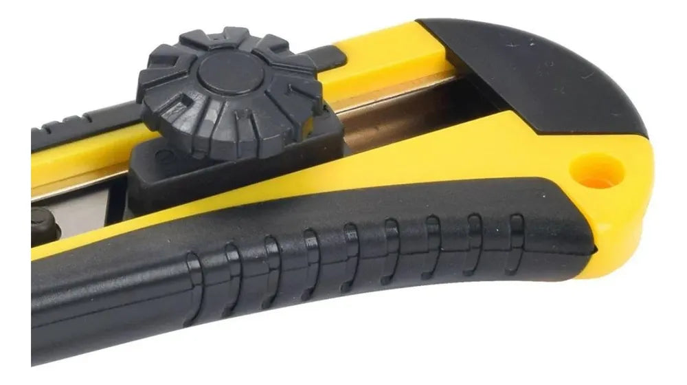 Excelente custo benefício, muito prático e resistente. A lâmina trava automaticamente assim que é posicionada. Não vem com lâminas reservas mas possiu espaço de armazenamento para elas, o que traz praticidade.