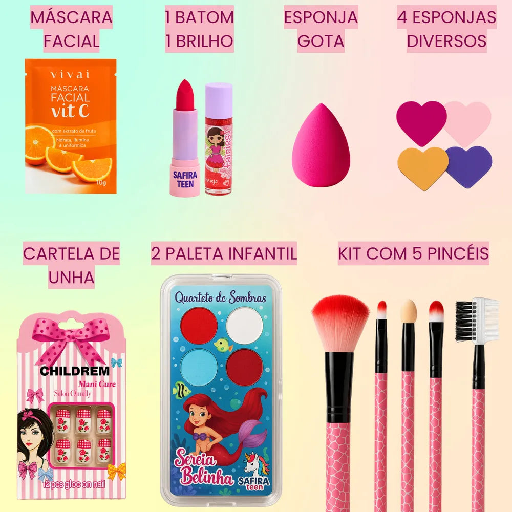 CONVIDAMOS VOCÊ A PROPORCIONAR UMA AVENTURA DE CORES E DESCOBERTAS A SUA PRINCESINHA COM NOSSO LINDO KIT INFANTIL. ESTIMULE A IMAGINAÇÃO, HABILIDADES ARTÍSTICAS E AUTOCONFIANÇA, ENQUANTO GARANTIMOS A SEGURANÇA E A QUALIDADE DO PRODUTO.