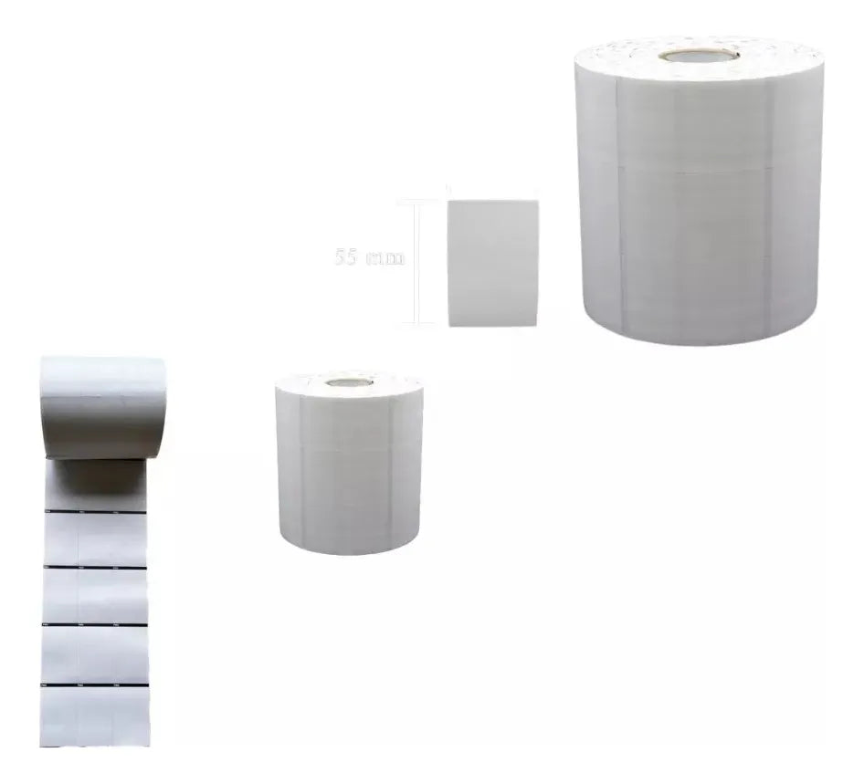 Ideal para uso em impressoras de transferência térmica com ribbons para impressão de informação de composição e cuidados, oferecendo excelente impressão e leitura do códigos de barras.