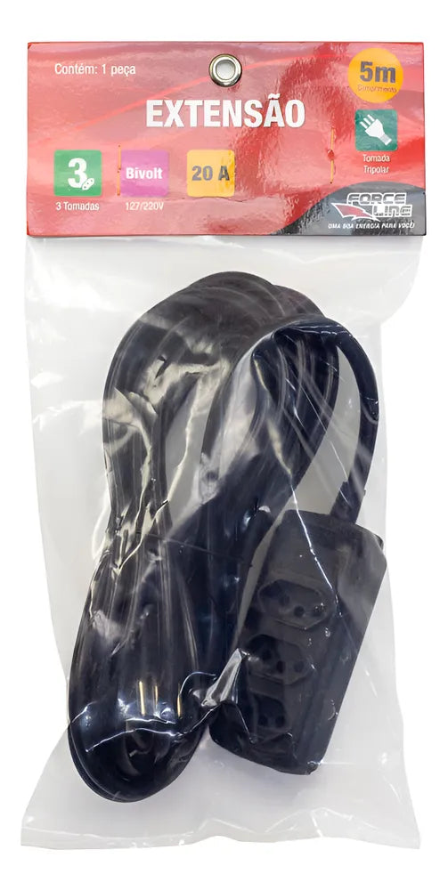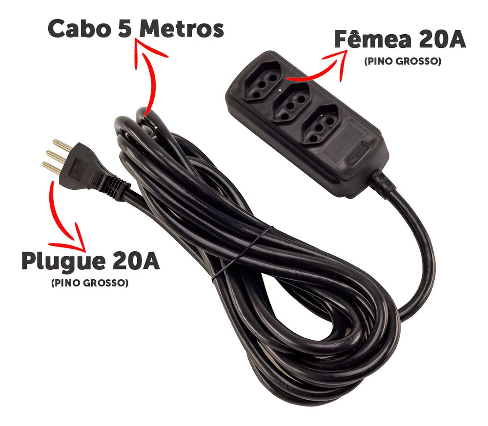 Extensao 3 Tomadas Tripolar 20A 5M Preto