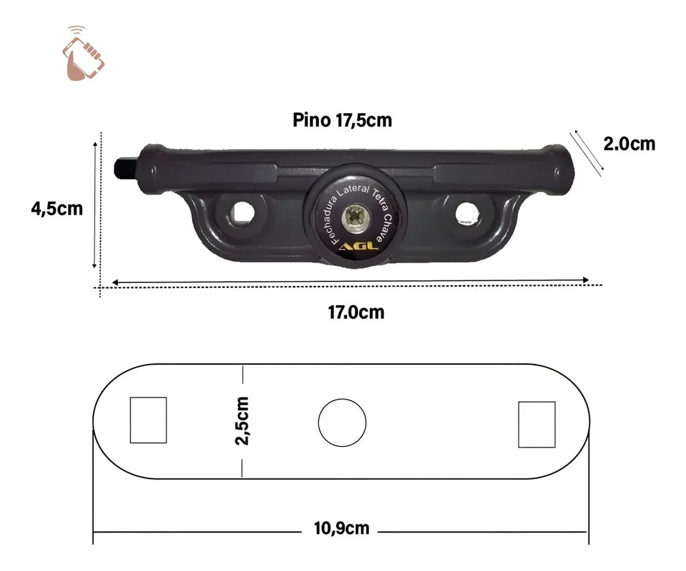 - Dimensões: a 45 x l 170 x p 20mm (pino 175mm)