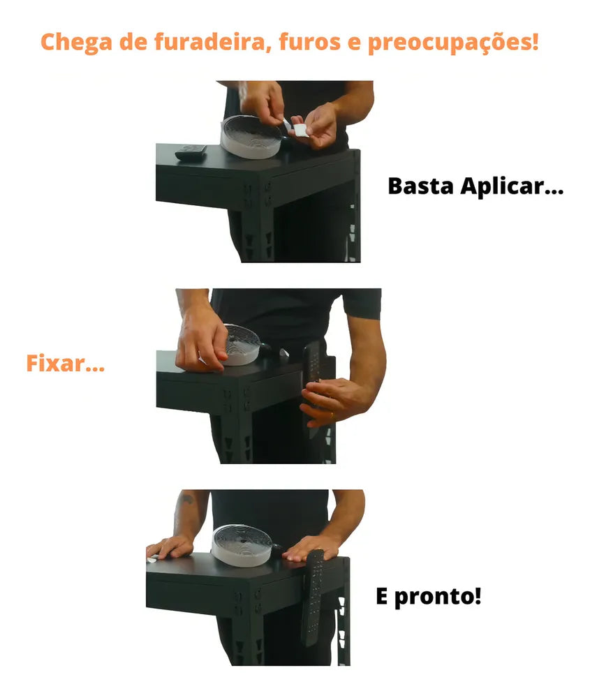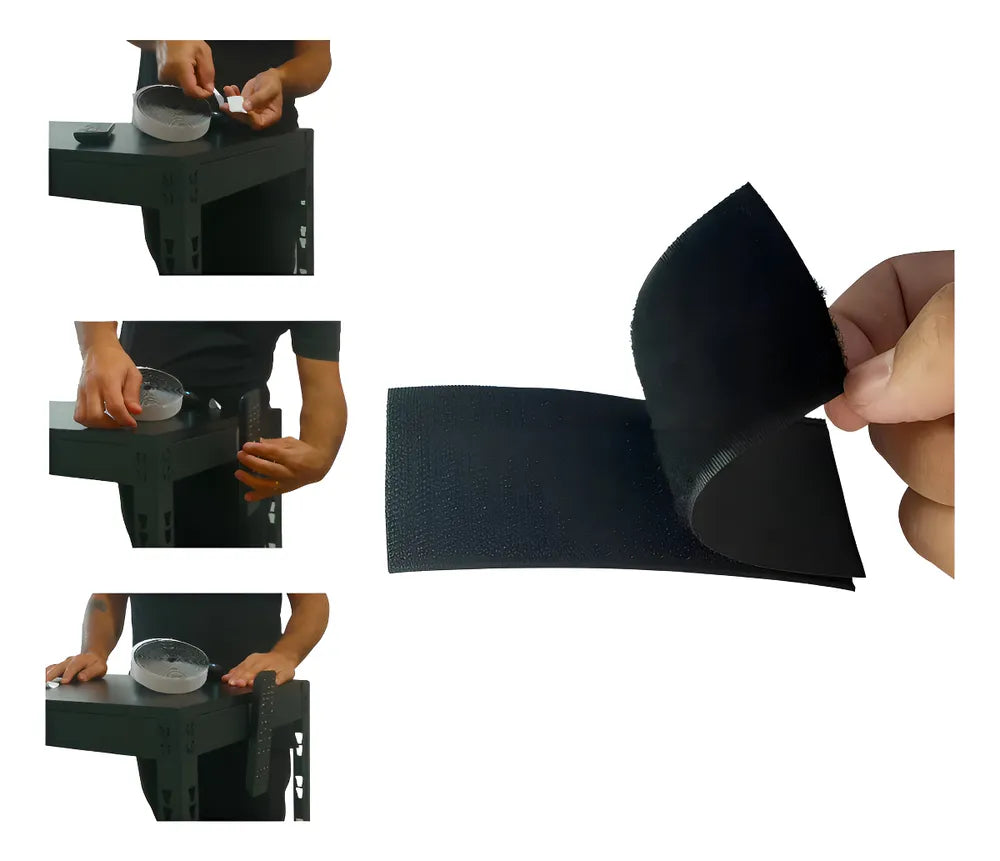 Similar ao velcro. Possui adesivo autocolante nos dois lados com ótima fixação.