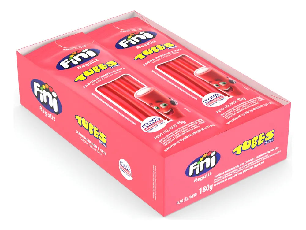 Caixa de 180g do Original Tubes Fini. Sabor Morango Doce.