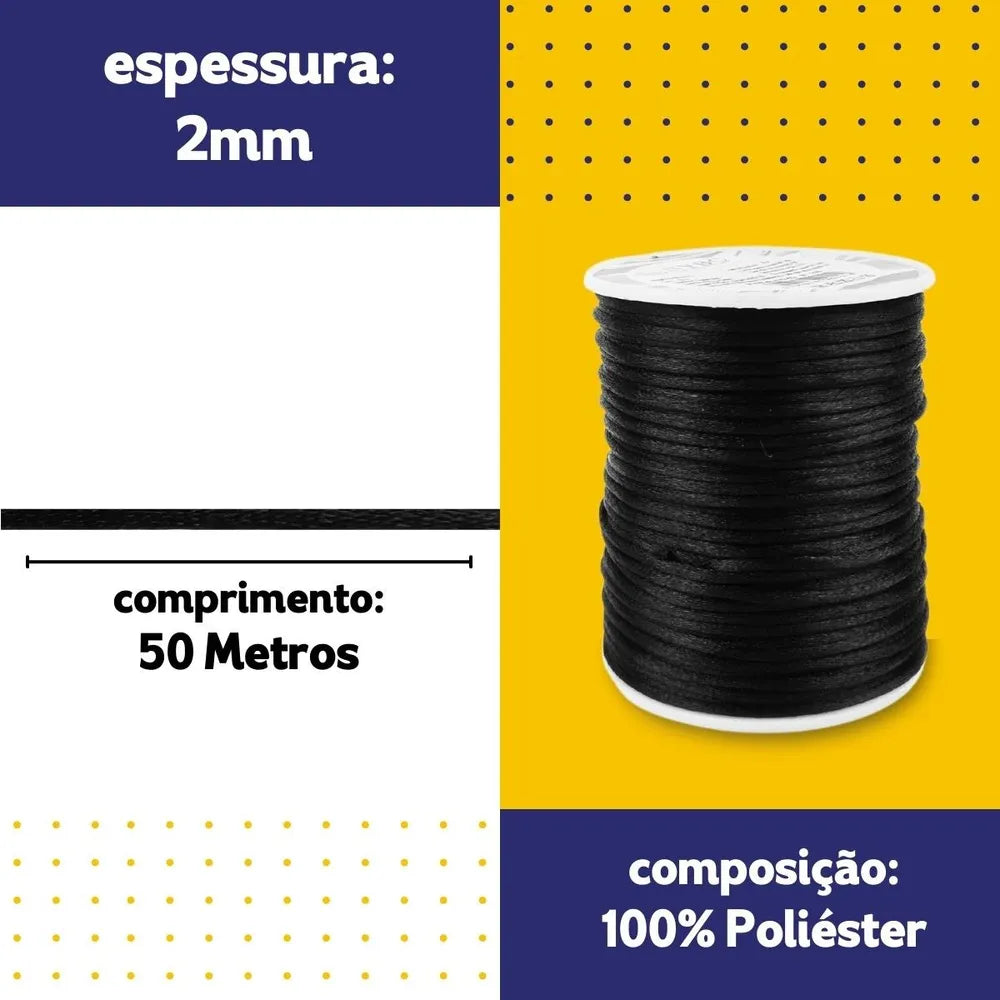 Cada embalagem contém uma unidade do Fio De Seda - Cordão Rabo De Rato 2mm- Preto - Nybc Cor Preto-310. Este produto é uma excelente adição à sua coleção de materiais de artesanato, proporcionando-lhe uma opção de alta qualidade para todas as suas necessidades de cordão.