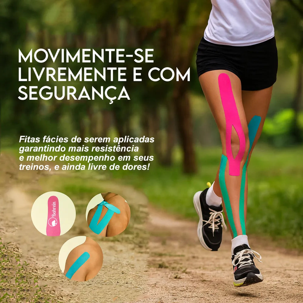 Com adesivo resistente ao suor e à umidade, a fita permanece fixa mesmo em treinos intensos, garantindo maior segurança. Seu material respirável e elástico acompanha os movimentos do corpo, sem restringir a mobilidade, tornando-a ideal para uso prolongado.