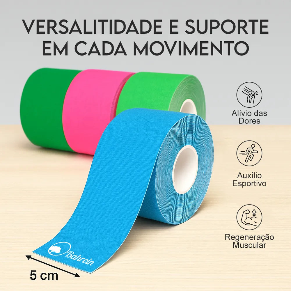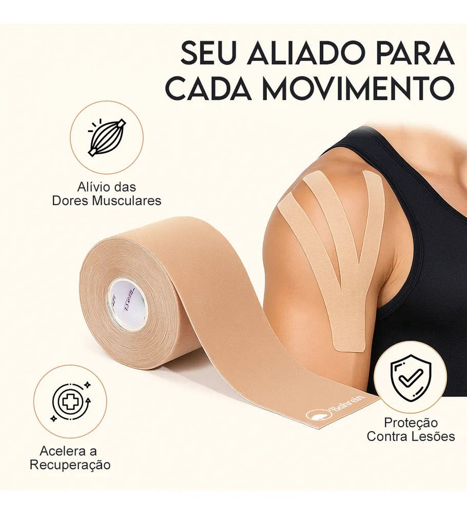 Pode ser aplicada em diferentes regiões, como joelhos, ombros, costas, braços e pernas, auxiliando na prevenção de lesões e na recuperação de dores musculares. O rolo de 5 metros permite múltiplas aplicações, oferecendo praticidade e ótimo custo-benefício.