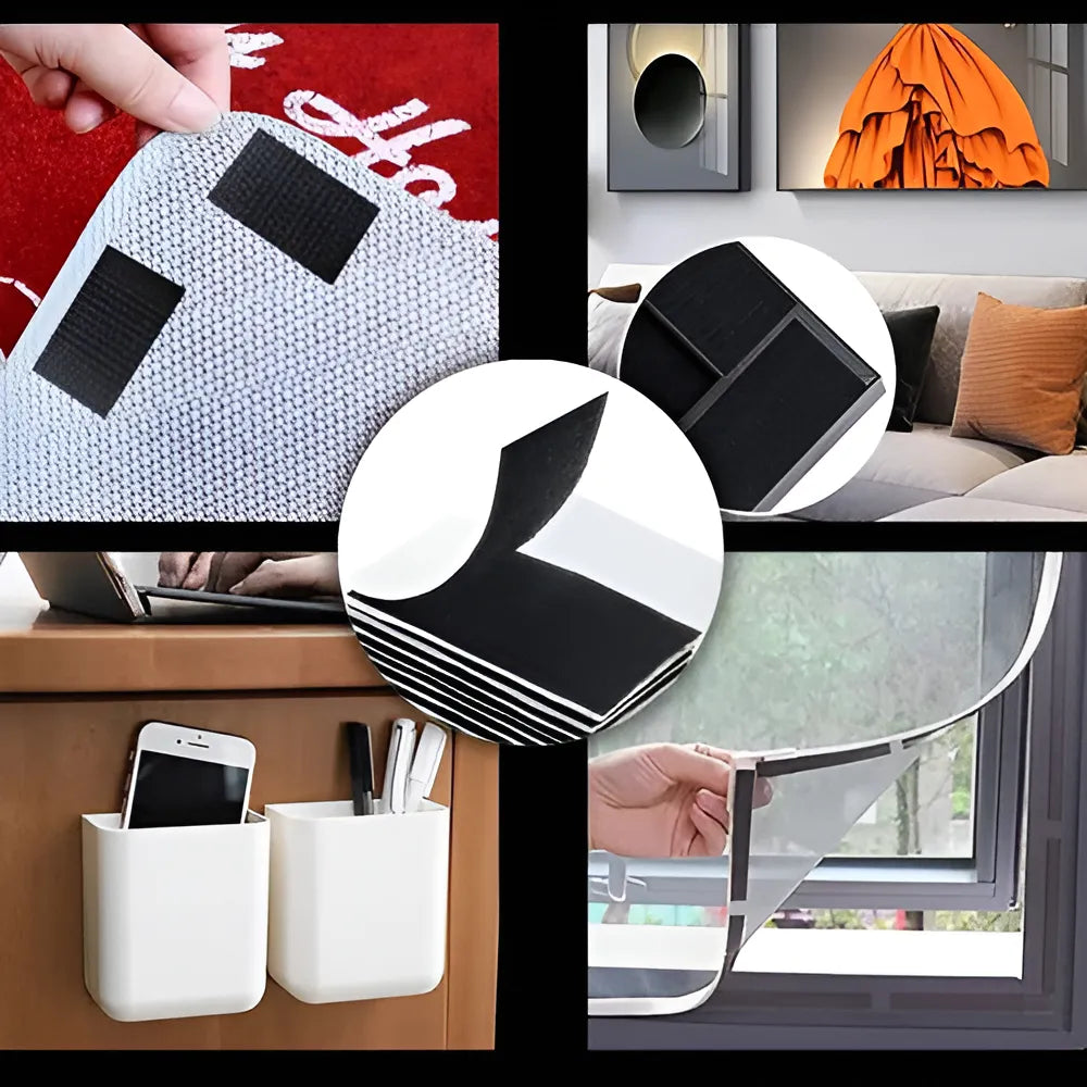 Utilizei para fixar um mosquiteiro na janela e funciona perfeito como na foto!.