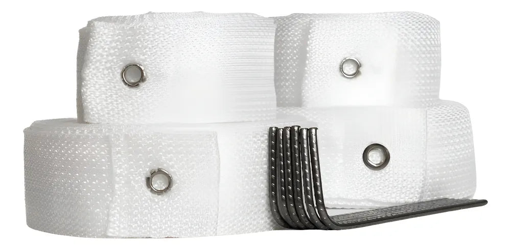 O kit possui ilhós nas extremidades, e no meio dos 16m com fita dupla, para não desfiar, ajudando assim na fixação e montagem da quadra. Além disso, nossa fita possui 50mm de largura, sendo a largura oficial das quadras de Beach Tennis.