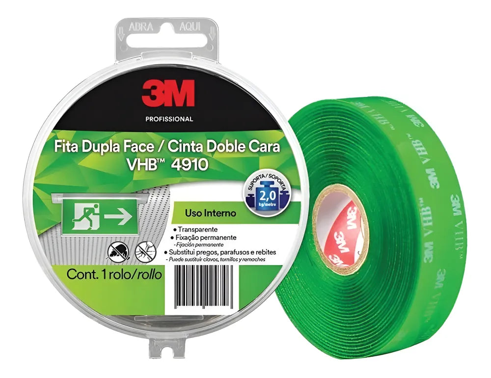 A Fita Dupla Face VHB4910 é ideal para aplicações internas, proporcionando fixação permanente de alta qualidade. Com 12mm de largura e 5 metros de comprimento, esta fita adesiva é uma solução eficaz para montagens e uniões de peças em diversos substratos. Sua composição permite uma aderência forte e duradoura, sem a necessidade de perfuração ou parafusos, mantendo as superfícies limpas e com acabamento estético superior.
