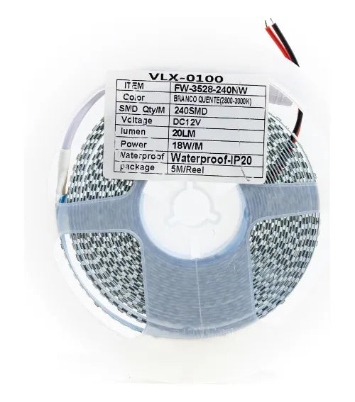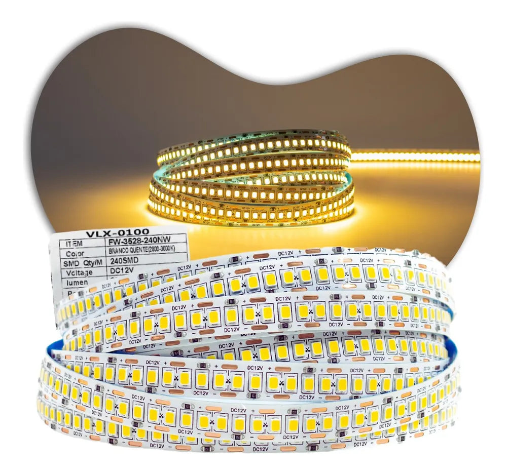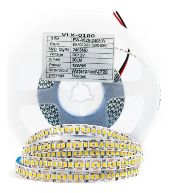 Fita Led 18w/m 12v Ip20 Smd3528 240leds por metro Irc80 5mts
