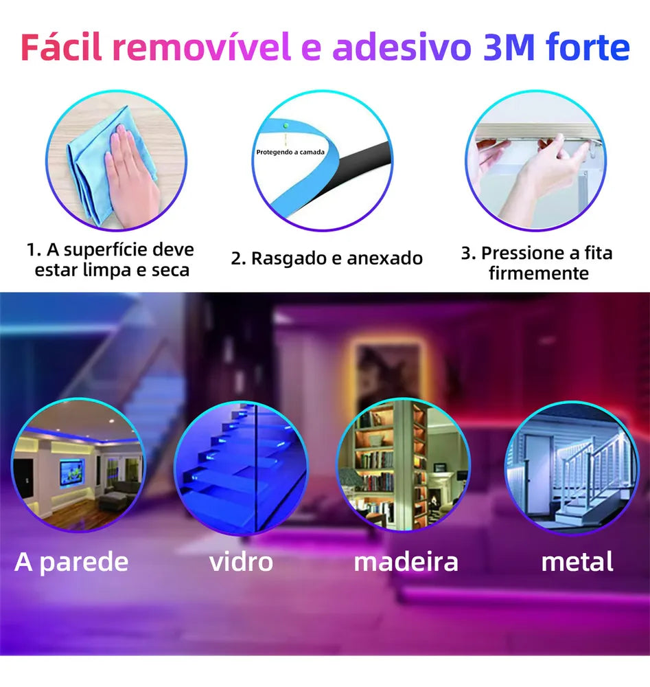 Multicolorido: Luzes LED coloridas e macias, o brilho da faixa de LED pode ser ajustado.