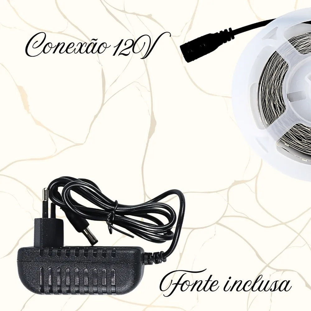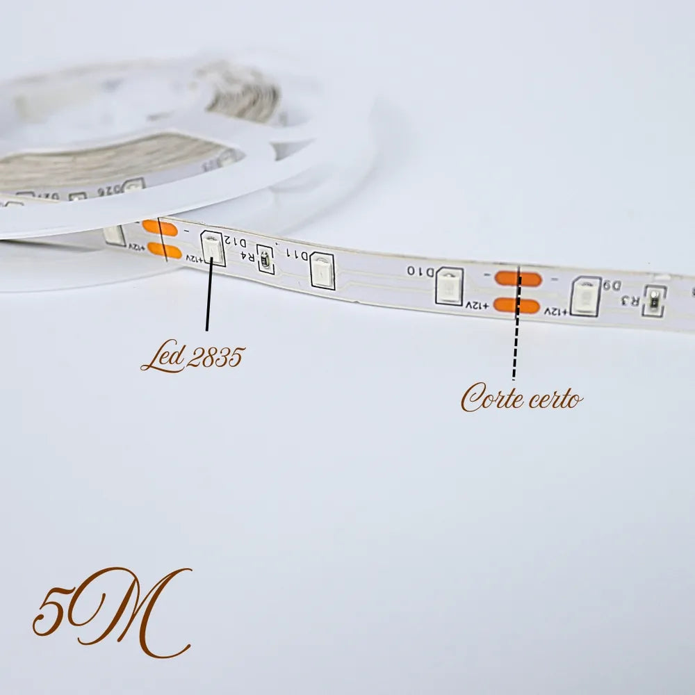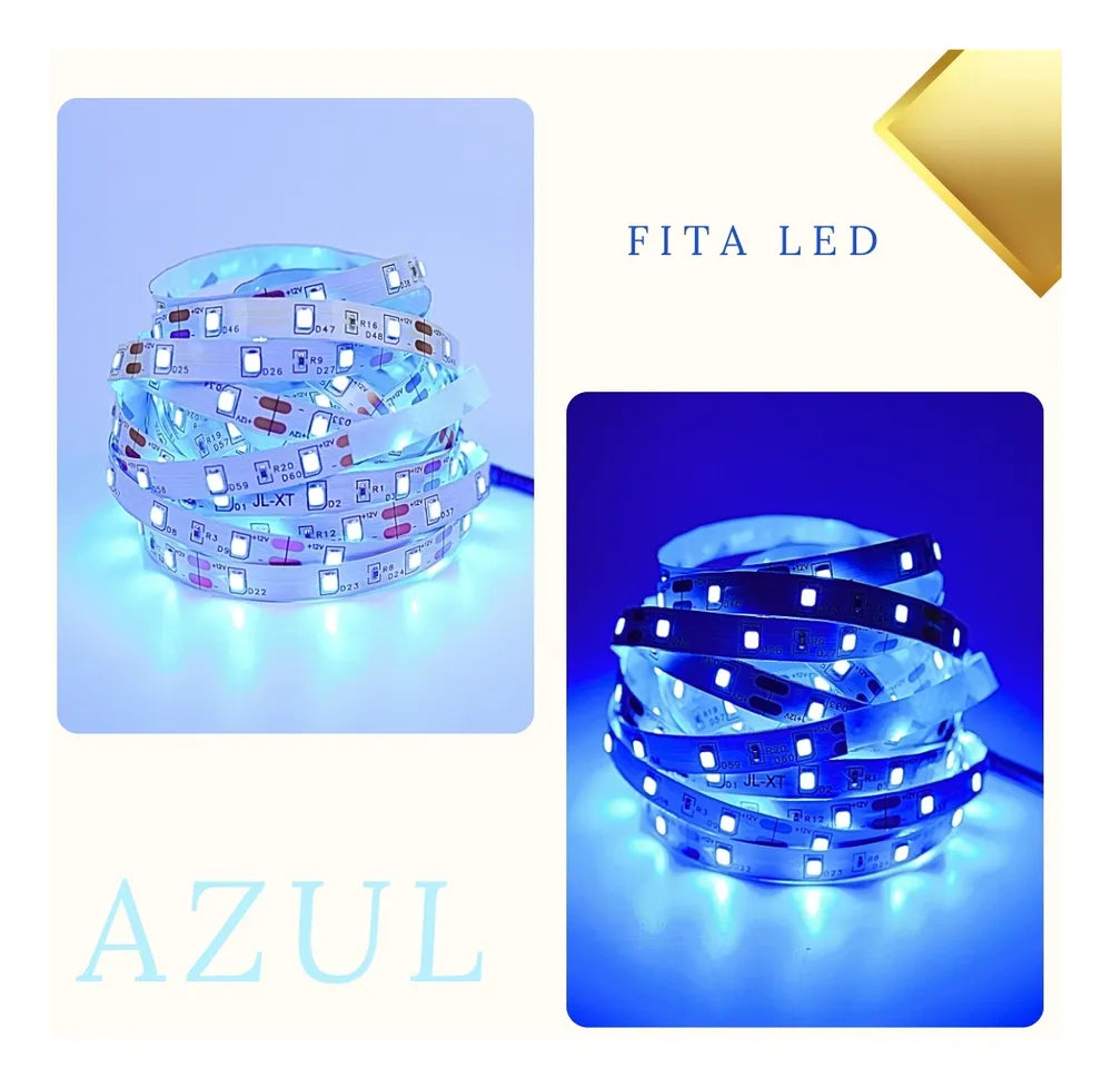 Fita Led Azul Fonte 5 Metros Dupla Face S/ Silicone 2835 Tensão de operação