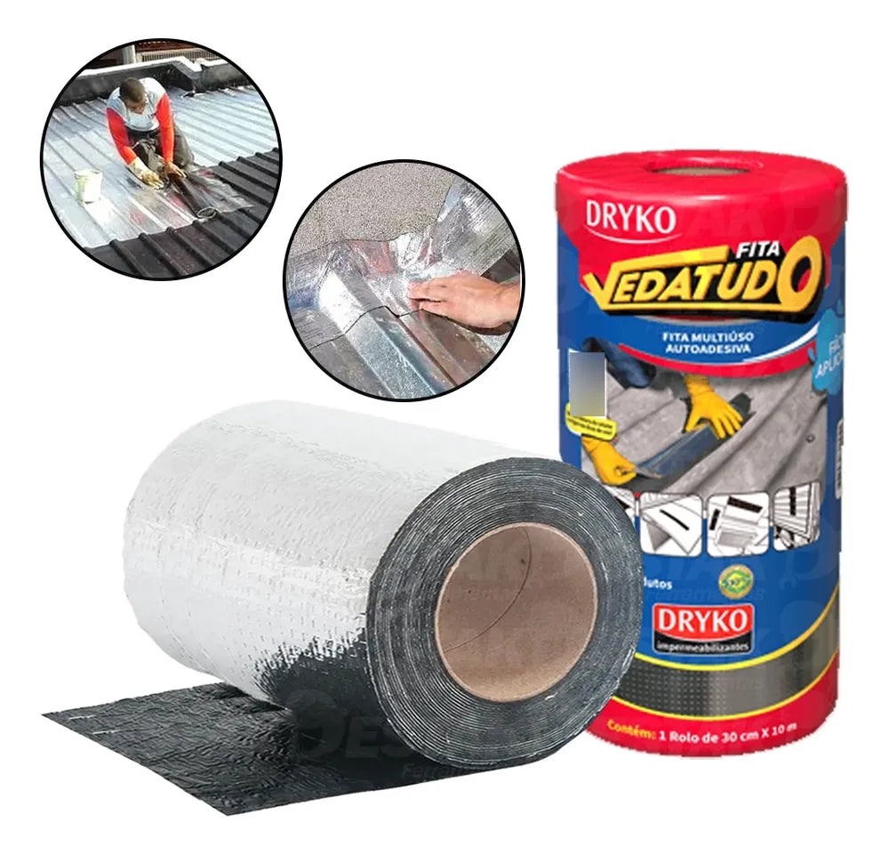 Fita Multiuso Autoadesiva Vedatudo Alumínio 30cm Dryko
