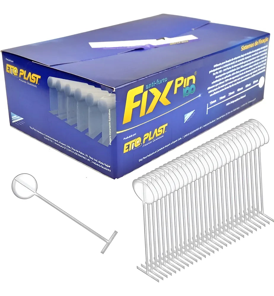Branco - FIx Pin 100 é o pino anti-furto original da Etiqplast (antiga Paulimaq) 100% nacional, conhecido também como tag pin, pino tag e pino rápido.
