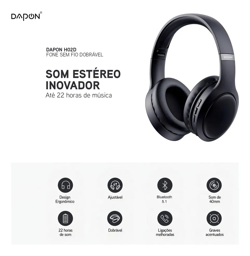 Não perca a oportunidade de elevar sua experiência musical ao próximo nível com o Fone De Ouvido Bluetooth Dapon H02D!
