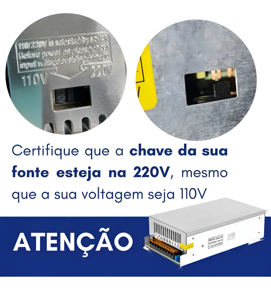 - Chave da fonte deve estar na 220V, mesmo que a voltagem do seu local seja 110V;