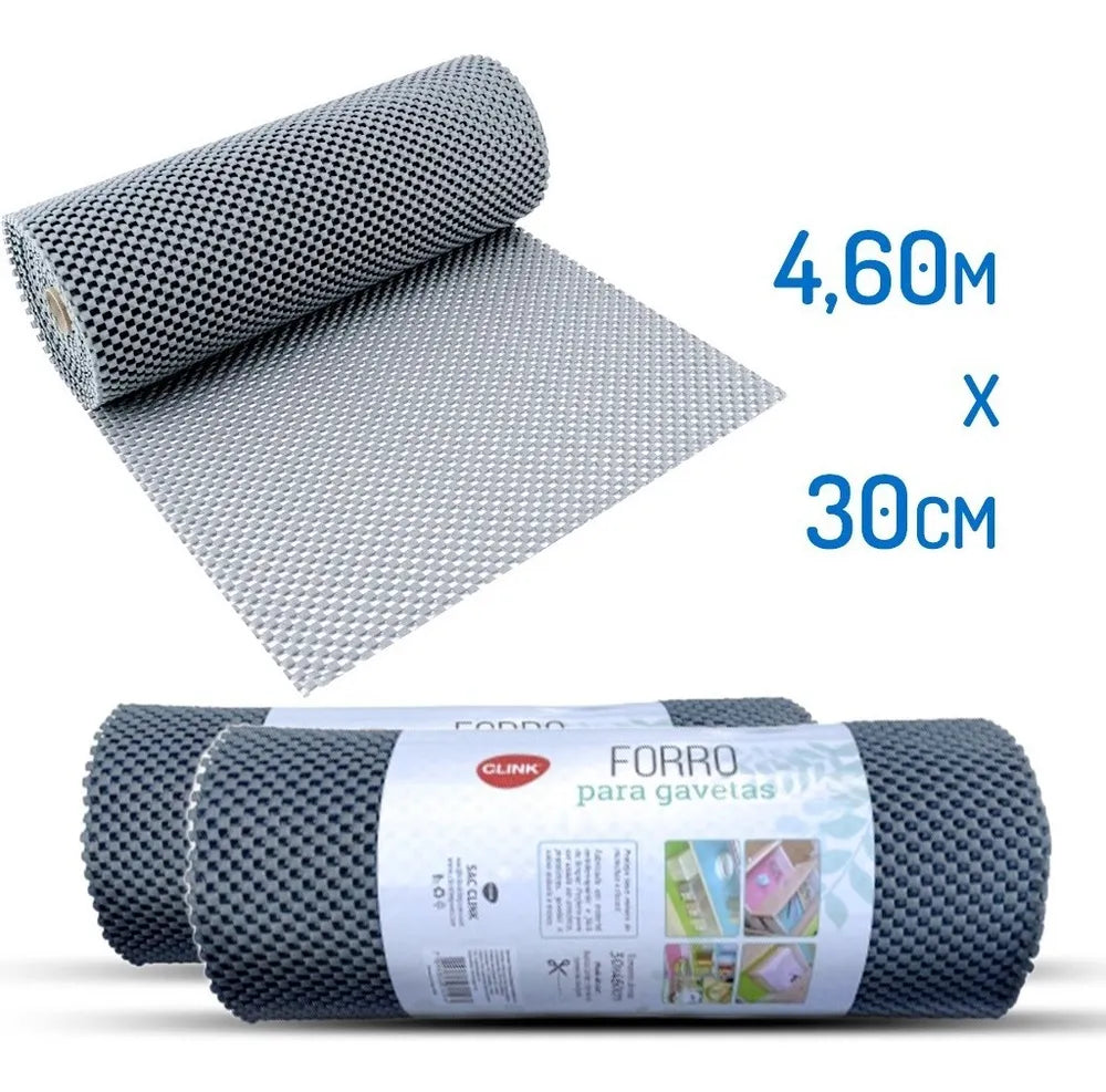 Este rolo de forro antiderrapante, medindo 30cmx460cm, é perfeito para revestir gavetas, armários e prateleiras, proporcionando uma superfície segura para seus itens.