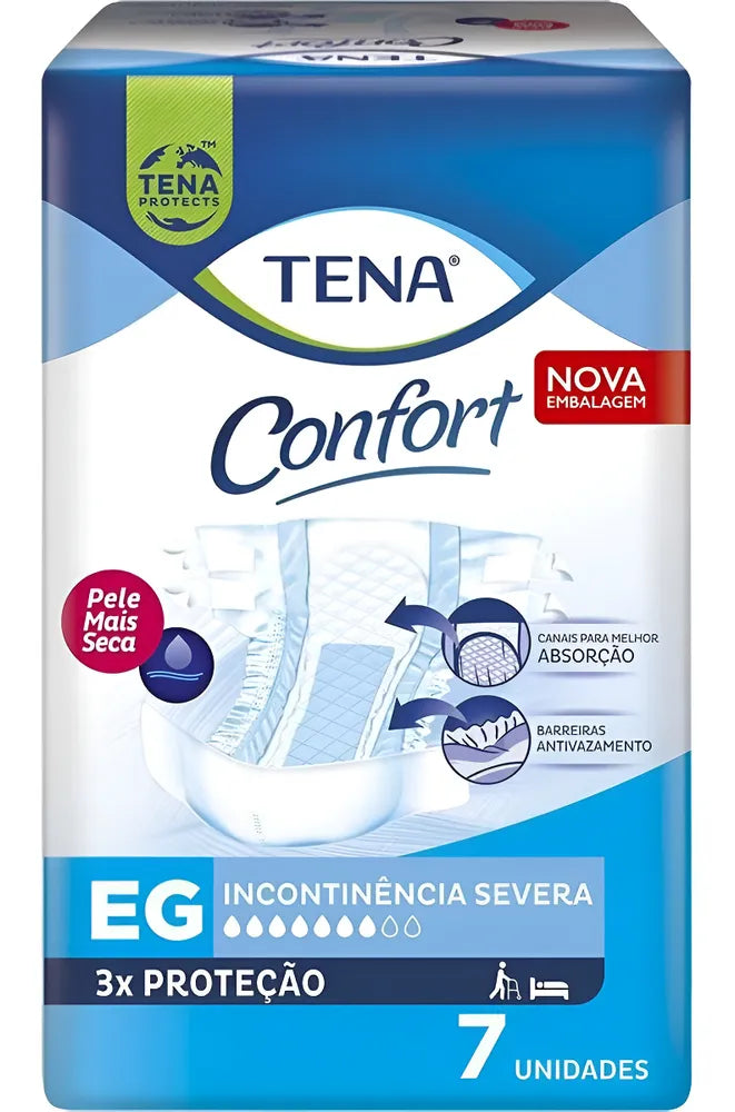 Fralda Geriátrica Descartável TENA Confort de uso diurno/noturno, desenvolvida para garantir proteção com muito conforto, segurança contra vazamentos e cuidado com a pele.