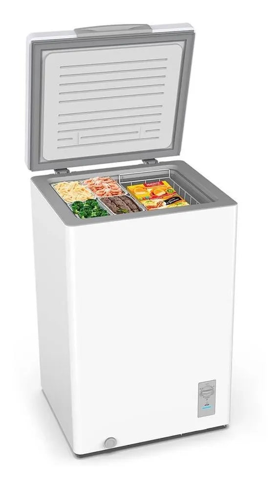 O Freezer Horizontal Midea CFA10B2 100L é a escolha perfeita para quem busca praticidade e capacidade em um só produto. Compacto, mas com amplo espaço interno, ele garante o armazenamento seguro de seus congelados, carnes, sorvetes e muito mais. Com design moderno e eficiente, ele é a solução ideal para sua casa ou comércio.