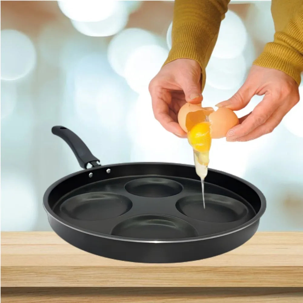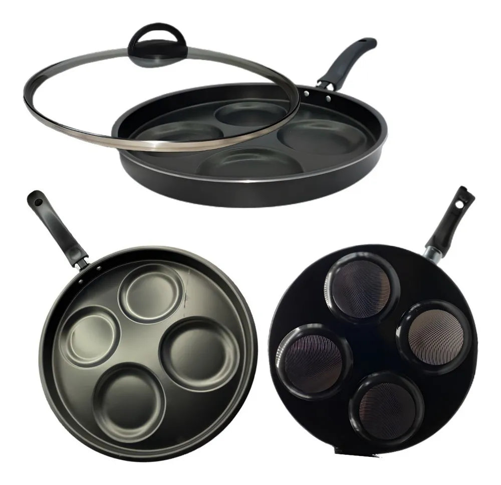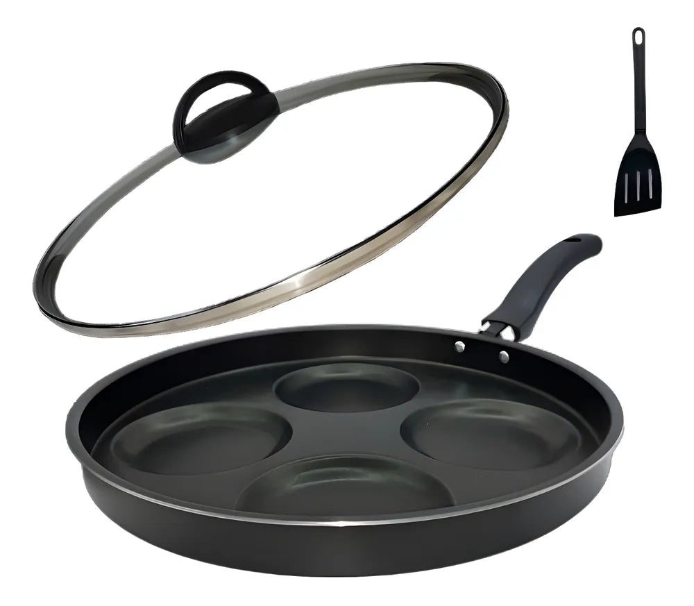 Frigideira 4 em 1 Multiuso com Divisória Antiaderente faz Ovos e Hamburgers, acompanha tampa de vidro temperado com Saída de vapor, o que permite visualizar o processo de cozimento dos alimentos. Design arrojado, beleza e muito charme, o diferencial desse Item, está em seu material, alumínio de alta qualidade, espessura de 1,1 mm, que confere ao item uma estrutura resistente garantindo a durabilidade e distribuição eficiente do calor, proporcionando o cozimento mais rápido e uniforme dos alimentos. Revestido com 5 camadas de antiaderente TEFLON (DuPont) - PFOA Free, internamente e externamente, evitando que o alimento grude na superfície, o que possibilita o preparo dos alimentos com menos gordura, além de proporcionar praticidade no momento da limpeza. Possui cabo reforçado ergonômico, feito em baquelite, material antitérmico que não retém calor, para garantir facilidade e máxima segurança no manuseio.