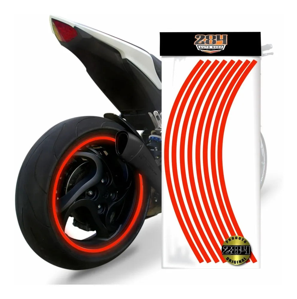 Vermelho Friso Adesivo Refletivo Para Rodas Kit Completo Universal Honda Yamaha Kawasaki - Adesivo Friso Refletivo Universal Para Motos E Carros