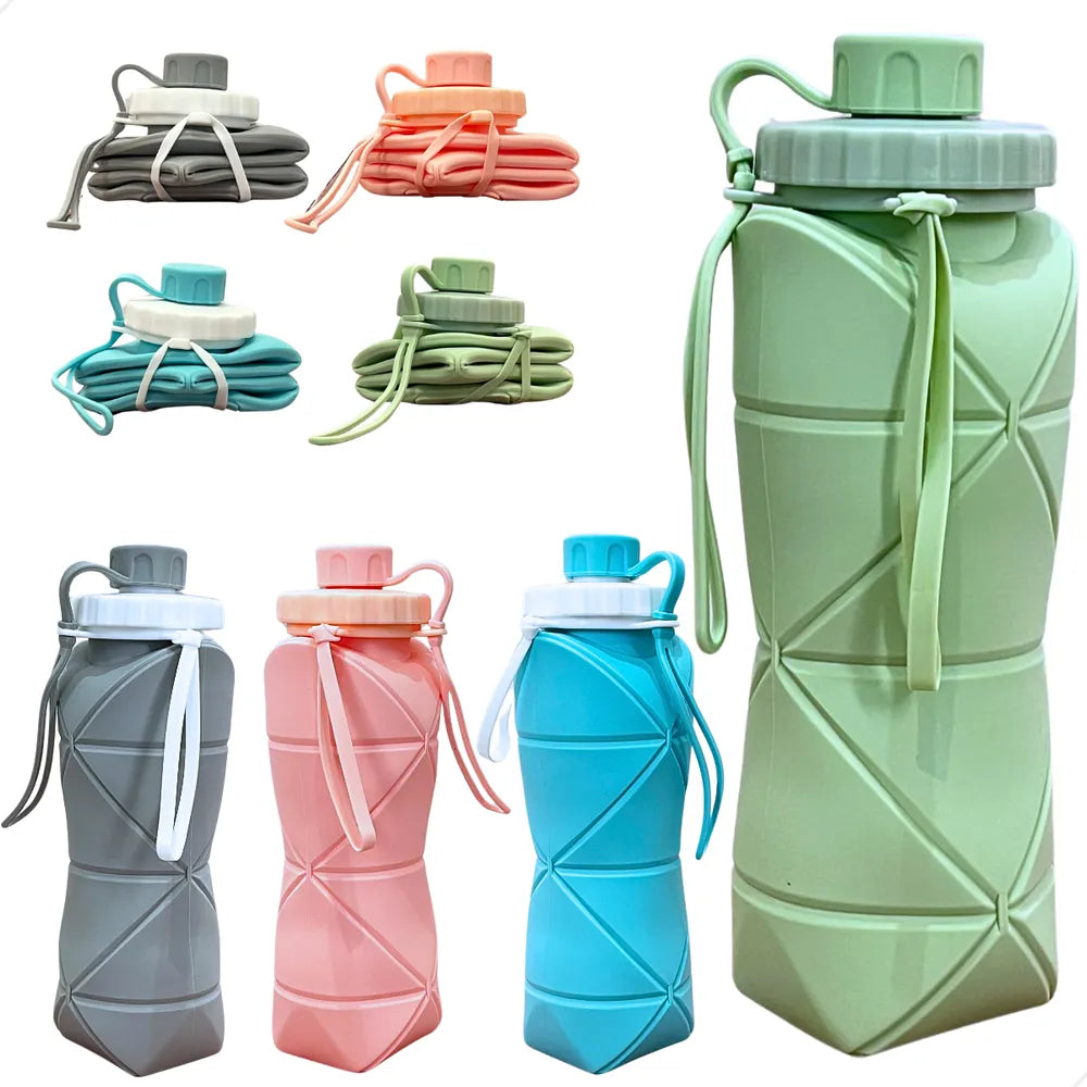 Verde-claro - Garrafa Dobrável de 600ml – Leve, Prática e Sustentável