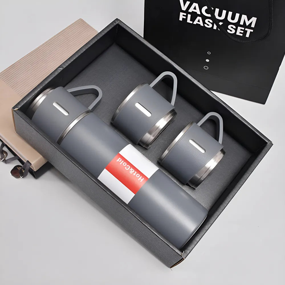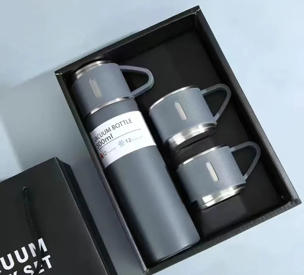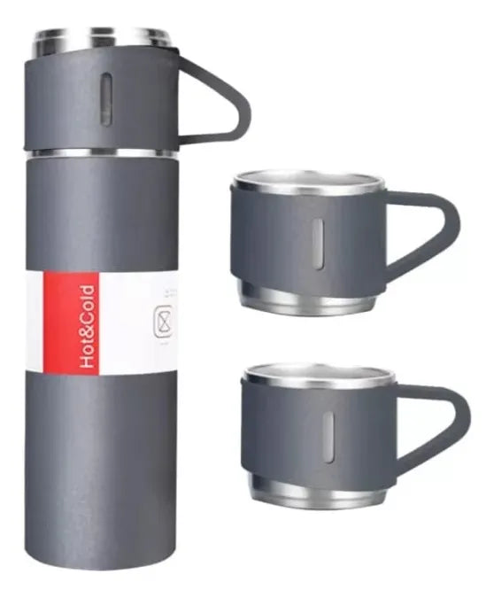 Eu já tenho um jogo e comprei pra dar de presente, porque gostei, ela segura bem a temperatura. Apenas a cinza veio com a cor diferente das canecas com a garrafa.