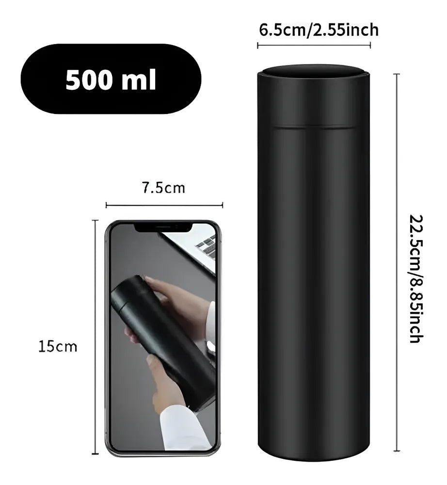 Mantenha suas bebidas na temperatura ideal por até 12 horas com a Garrafa Térmica Inteligente de 500ml. Com um design moderno e construída em alumínio resistente no exterior e aço inoxidável no interior, esta garrafa é a companhia perfeita para o dia a dia. Seu visor LED inteligente permite verificar a temperatura do líquido com um toque, garantindo que seu café permaneça quente ou sua água gelada conforme sua preferência.