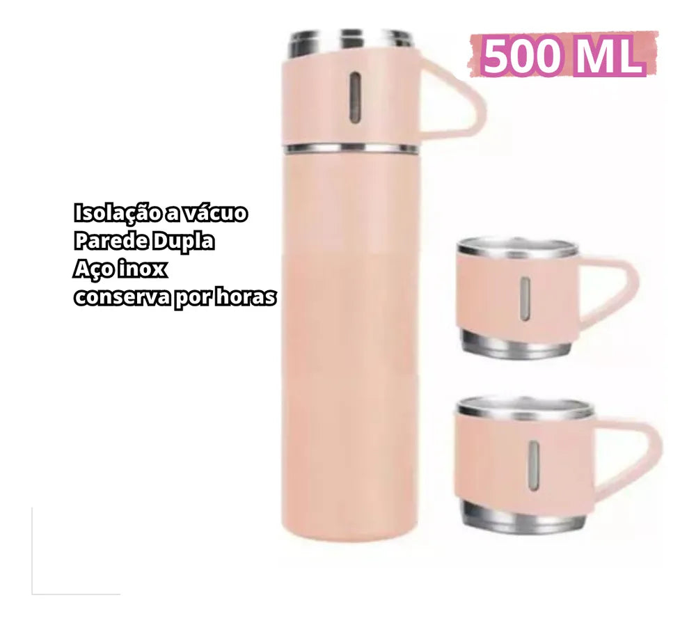 Garrafa Térmica Com Xícaras Inox Vacuum Tche Amo Água Café Cor Rosa
