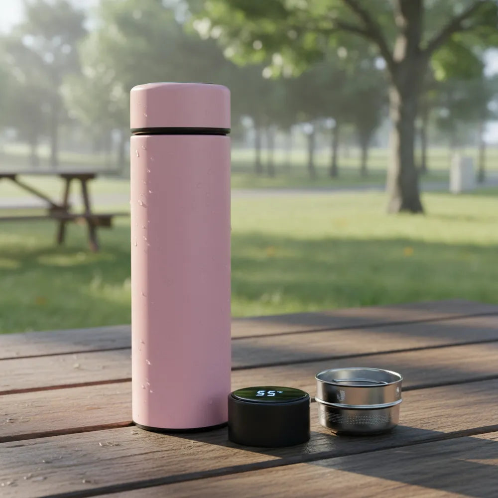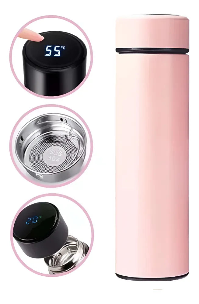 Garrafa Térmica De Aguá Café Inox Com Termômetro Digital Sm Cor Rosa