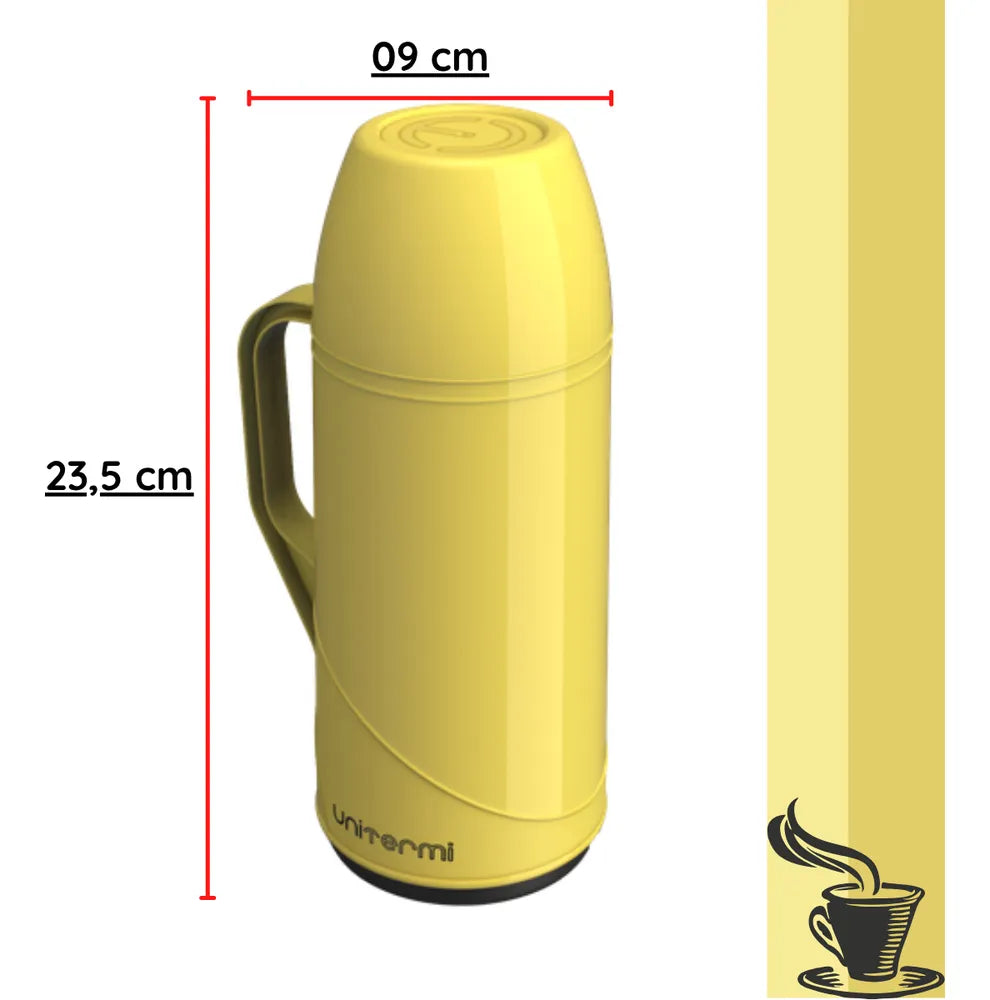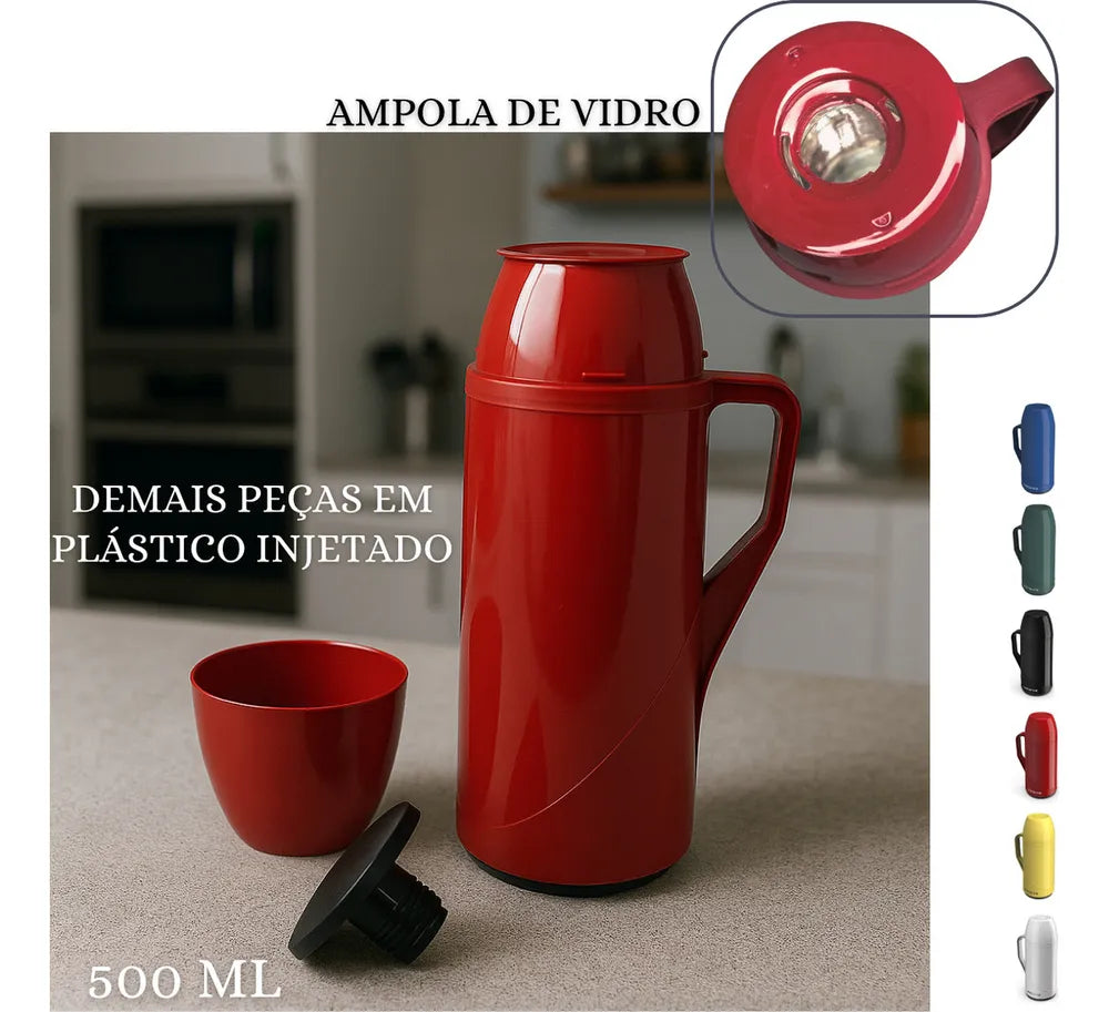 Garrafa Térmica Pequena Portátil Azul Esta garrafa será o companheiro ideal para manter seu café fresco e quente, a garrafa possui uma excelente capacidade, além de contar com um tamanho compacto e fácil de transportar. Sua construção garante que sua bebida fique quente por até 8 horas e fria por até 12 horas, possui uma ótima vedação, garantindo que não tenha vazamentos. Feita com materiais de alta qualidade, a garrafa garante uma ótima durabilidade e resistência CUIDADOS: -Não utilizar a garrafa para bebidas gaseificadas; -Não coloque peças rígidas ou gelo dentro da garrafa pois pode acarretar na quebra da ampola de vidro; -Capacidade de 500ml; -Livre de BPA; -12 Horas Fria; -8 Horas Quente. ESPECIFICAÇÕES: Material: Ampola de vidro e Plástico Dimensões: Alt.: 26cm x Diâmetro: 8cm Capacidade: 500ml Cor: Azul Peso: Aprox. 400g