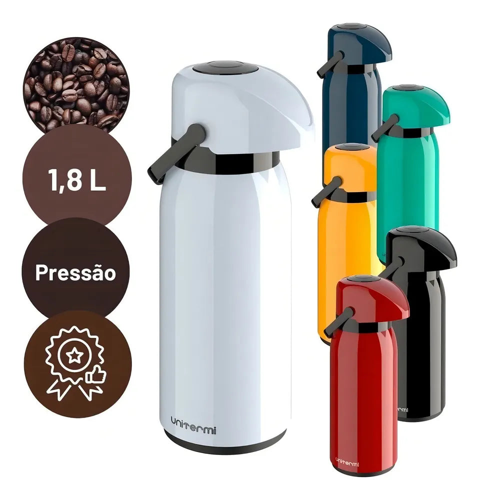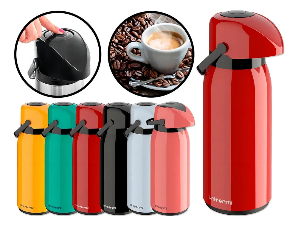 A Garrafa Térmica Verona possui um moderno e sofisticado sistema de pressão desenvolvido para facilitar a praticidade e funcionalidade nos mais diversos tipos de ambientes, possui também uma alça resistente facilitando o manuseio no transporte e um bico antigotas, evitando o desperdício da sua bebida.