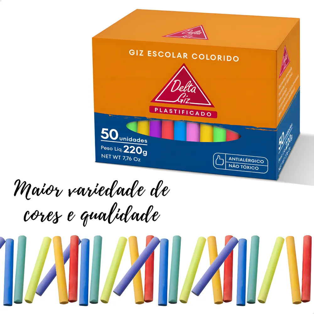 O Giz Delta é de alta qualidade, produzido com gesso ortopédico e envolvido em uma fina camada plastificante. Antialérgico e não tóxico, não solta pó e não suja as mãos. Escreve suavemente e rende mais, além de ser resistente.
