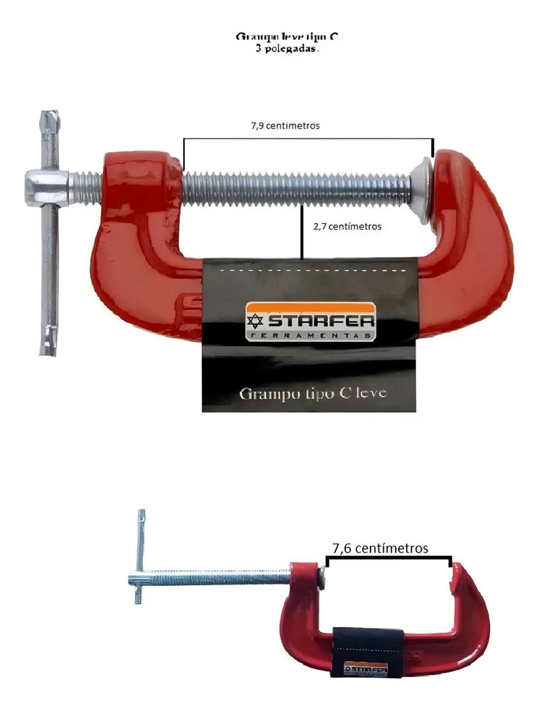 Grampo tipo C Leve Starfer 3 Polegadas para Marceneiro