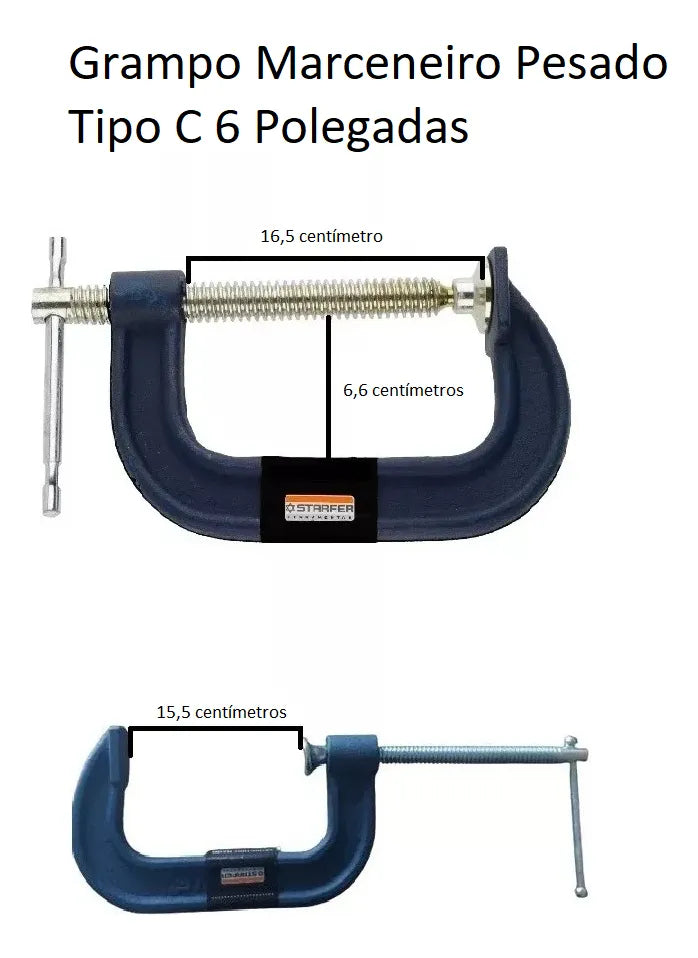 O Grampo Tipo C Marceneiro Pesado 6 Polegadas Starfer é uma ferramenta que não pode faltar na sua caixa de ferramentas, seja você um profissional ou um entusiasta do faça-você-mesmo. Ref. 07040067.