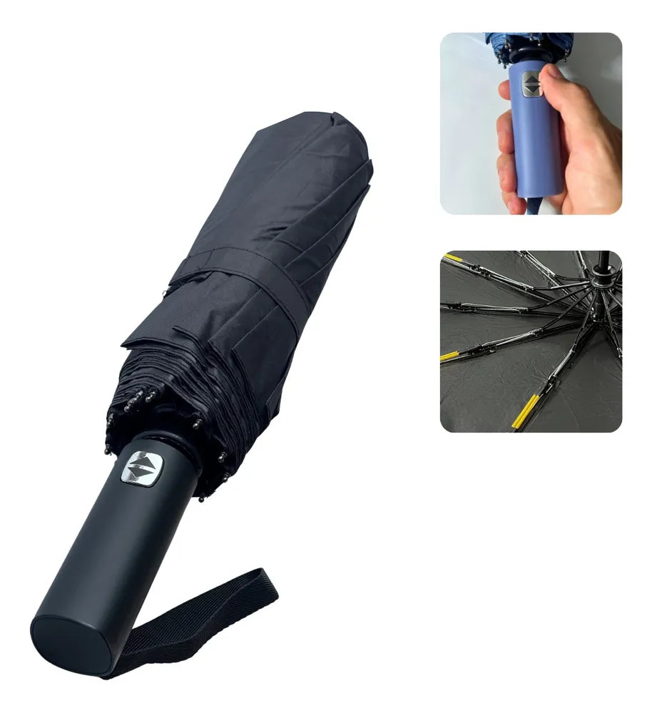 A praticidade é ampliada pela presença de alças ergonômicas que proporcionam uma aderência confortável e segura, mesmo em condições úmidas. E, para manter a operação discreta, o mecanismo automático é quase silencioso, permitindo que você aproveite sua jornada com tranquilidade.