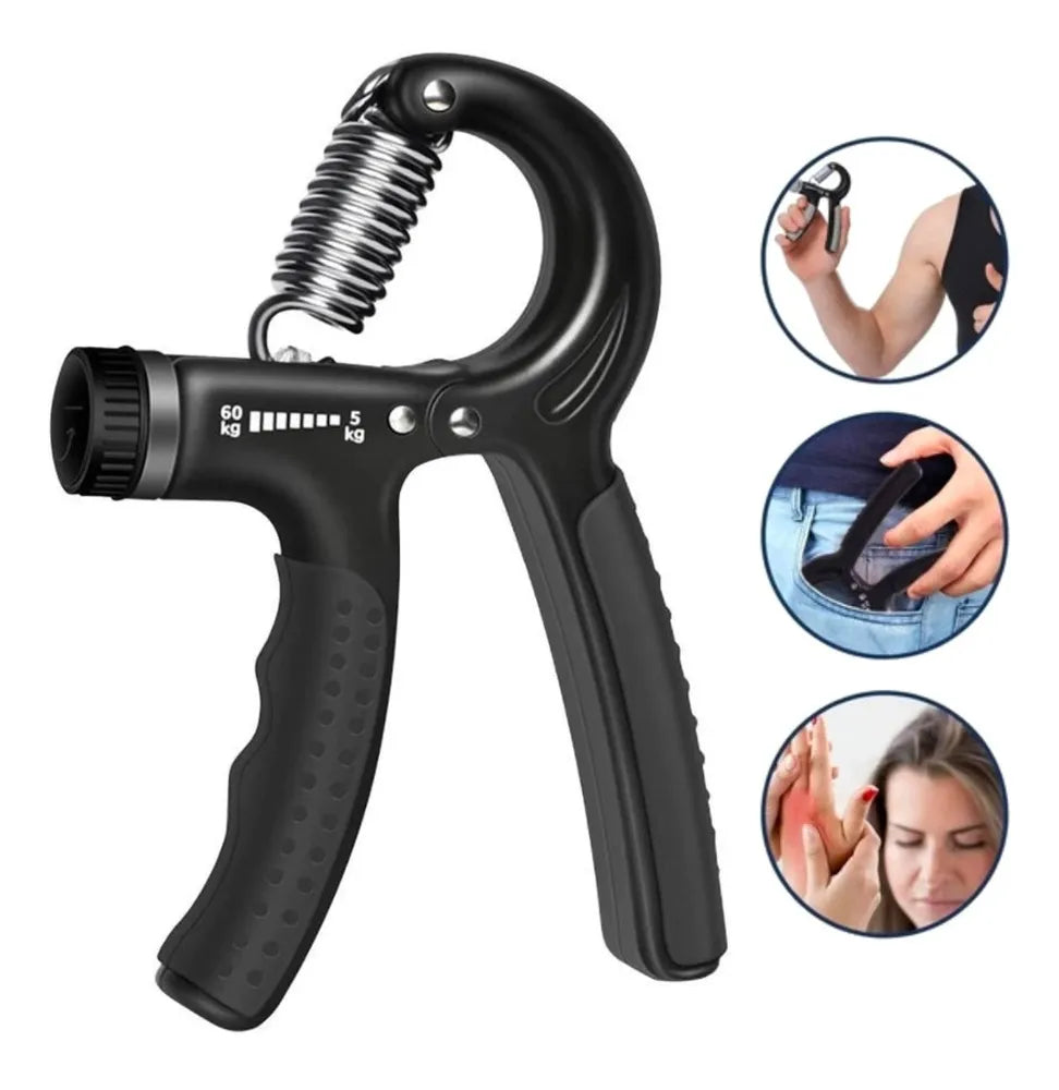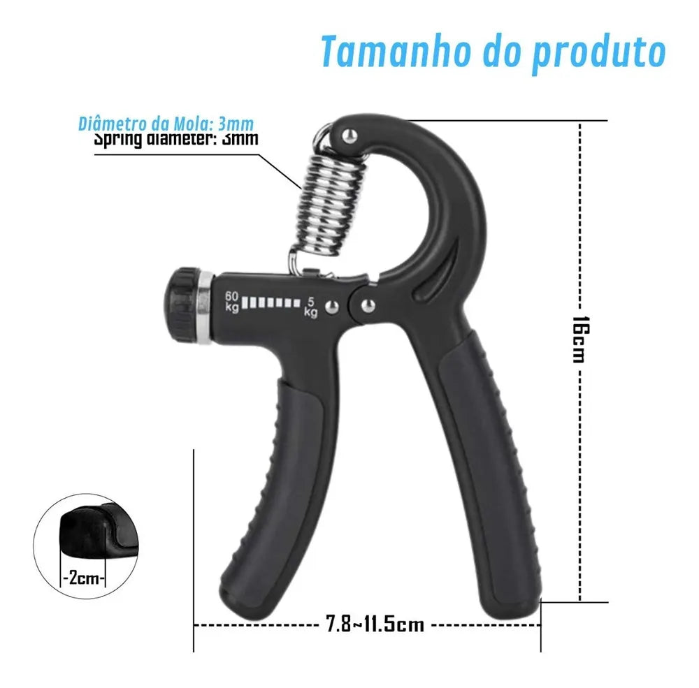 Aparelho hand grip mola de mão com ajuste 5kg a 60kg, possui níveis de resistência ajustáveis.