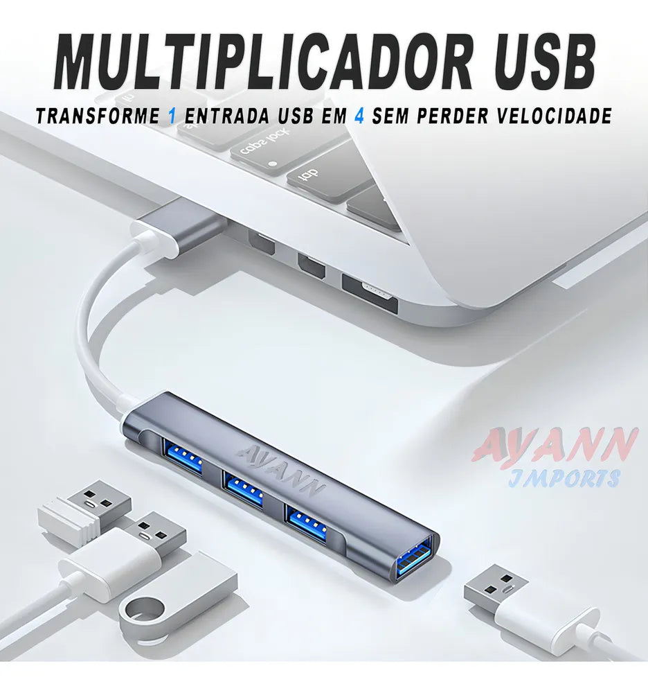 Precisando aumentar o número de entradas USB no seu notebook ou PC? O HUB USB multiplica suas conexões, transformando uma entrada em quatro, permitindo conectar vários dispositivos, como teclado, mouse, fone de ouvido, caixa de som, pendrive, celular, impressora etc., em uma única entrada.