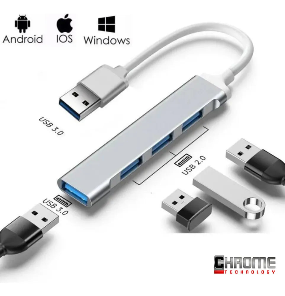 O Adaptador Hub USB 3.0 Compatível USB Tipo C da Chrome Technology é a solução ideal para quem busca expandir suas conexões de forma prática e eficiente. Com quatro entradas USB, este hub permite conectar múltiplos dispositivos simultaneamente, facilitando o seu dia a dia, seja no trabalho ou em casa.