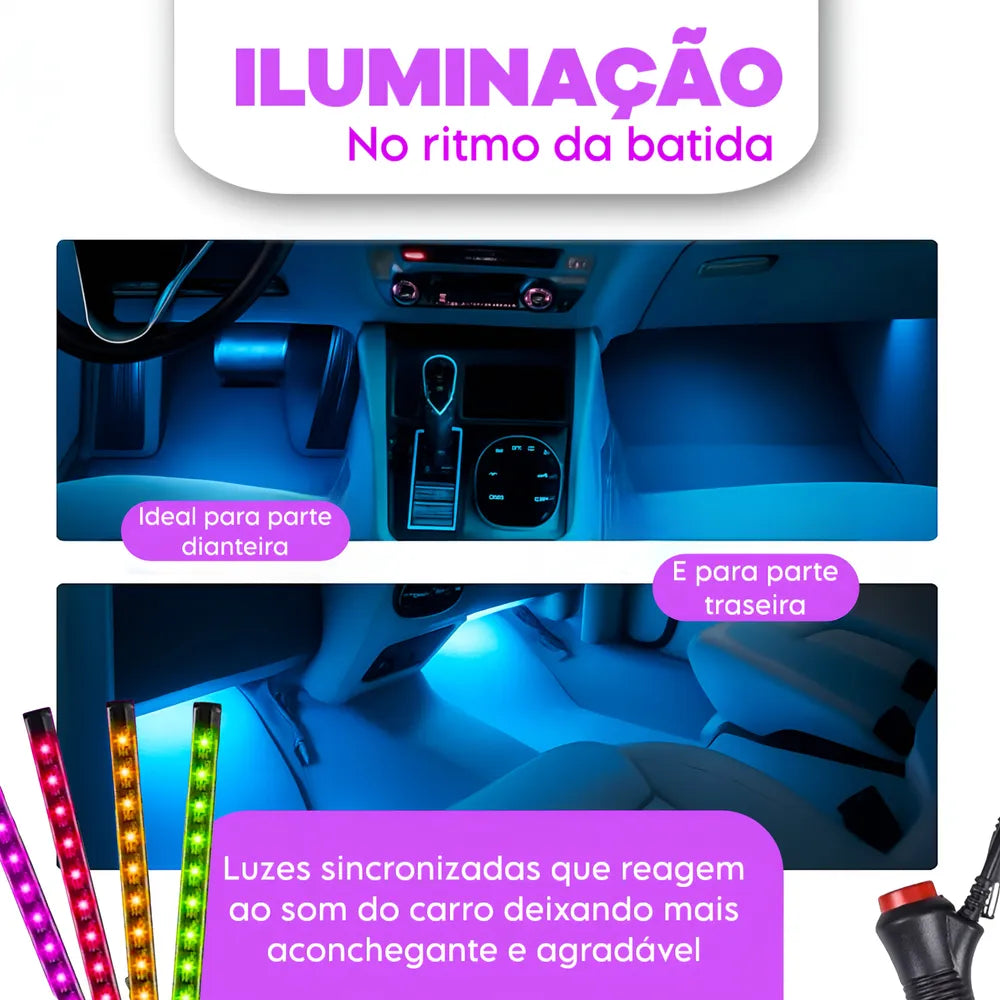 Imperdível para os amantes do tunning automotivo! Este kit proporcionará uma ótima experiência para você e quem mais estiver a bordo. Podendo ser controlado com varias cores diferentes, efeitos e intensidade da iluminação, tudo através de um controle remoto.