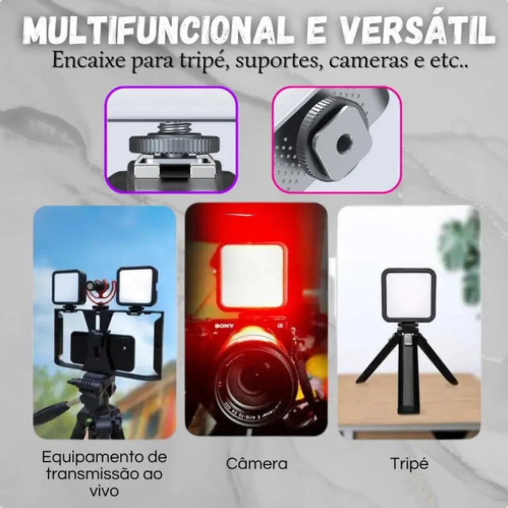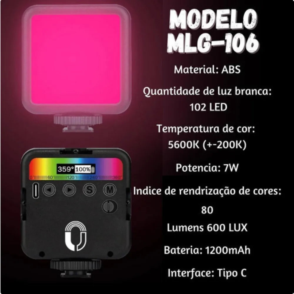4.5V - A luz de preenchimento LED Tomate MLG-106 possui modos ajustáveis, como diferentes temperaturas de cor, cores variáveis SOS e RGB. Utiliza lâmpadas de alta qualidade e alta luminosidade; todo o brilho, temperatura de cor e modo de cor RGB são ajustáveis.