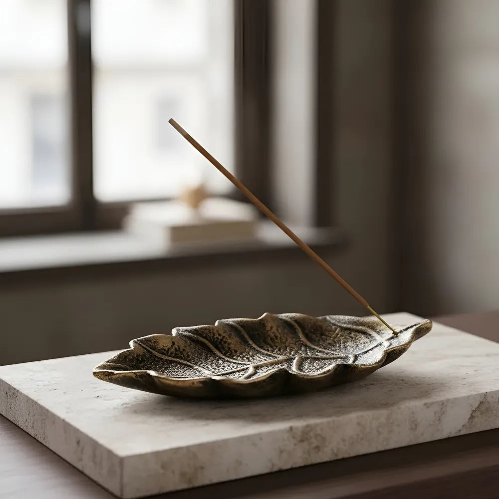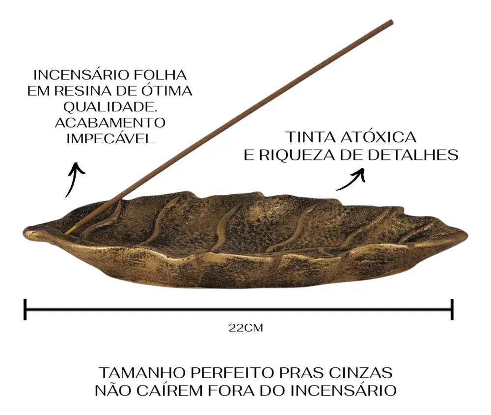 Com um comprimento de 22 cm e uma largura de 11 cm, este incensário tem um design em formato de folha que se destaca pela sua forma única.