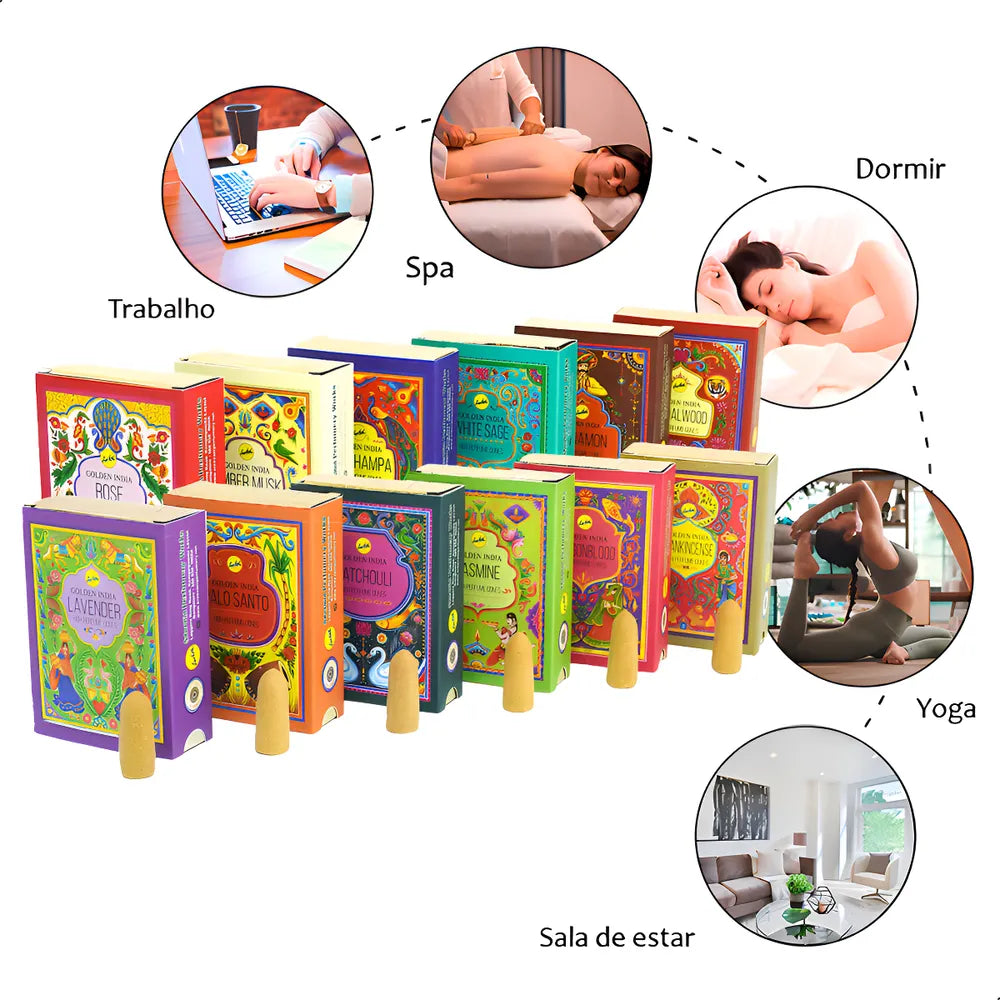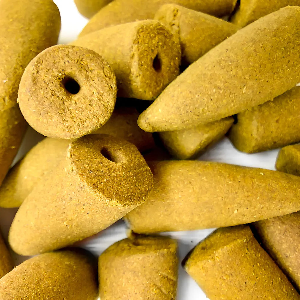 Os incensos de cone são utilizados em incensários cascatas, que exalam a fumaça de forma invertida (Back Flow), com este incenso o ambiente além de perfumado também irá apresentar uma aparência mais agradável com a peça de decoração.