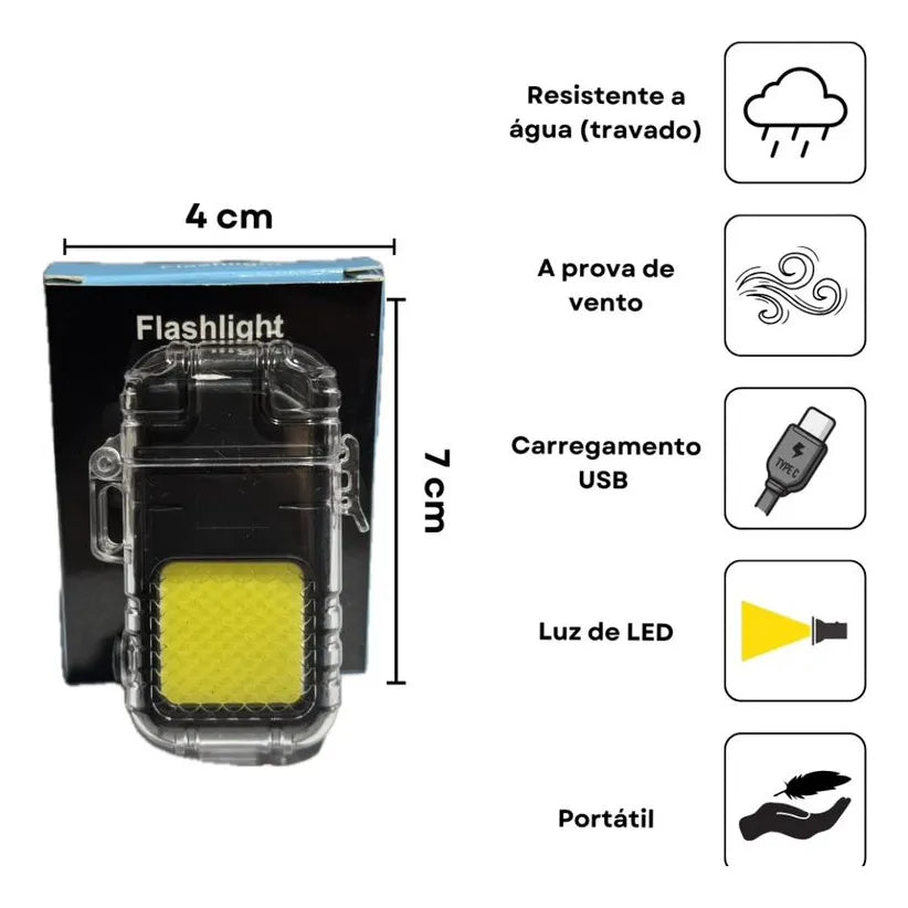 Fabricado em plástico de alta qualidade, o isqueiro é leve e fácil de transportar, cabendo facilmente em qualquer bolso ou mochila. A recarga via USB proporciona conveniência, permitindo que você o carregue em qualquer lugar, sem a necessidade de refis. Com uma única carga, você pode utilizá-lo várias vezes, tornando-o uma opção sustentável e econômica.
