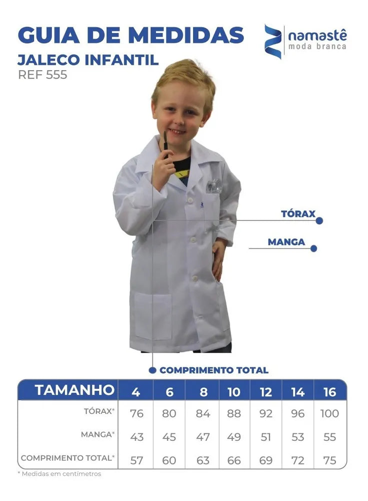 Para as nossas crianças cheias de sonhos e criatividade não podíamos deixar de oferecer um produto especialmente para elas. No incentivo para a realização de qualquer coisa!! Oferecemos um jaleco para nossos pequeninos doutores e doutoras. Seja no uso dentro das escolas ou nas brincadeiras com os amigos, o jaleco infantil promove a imaginação das crianças e realização de sonhos.