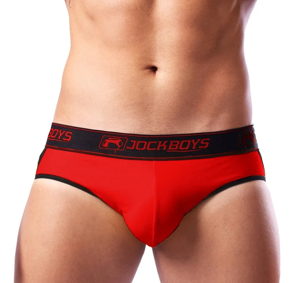 Vermelho P - Jockstrap Vermelha com formato Slip na parte da frente, com tecido de 4cm preto e detalhes vermelho na cintura, essa jock é muito confortável com modelagem justa, por esse motivo não recomendamos comprar tamanho menor porque não irá servir.