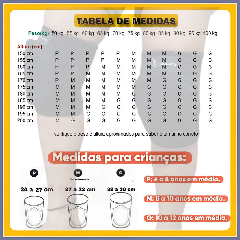 Para escolher o tamanho adequado, meça a circunferência da perna 2 dedos acima do joelho.