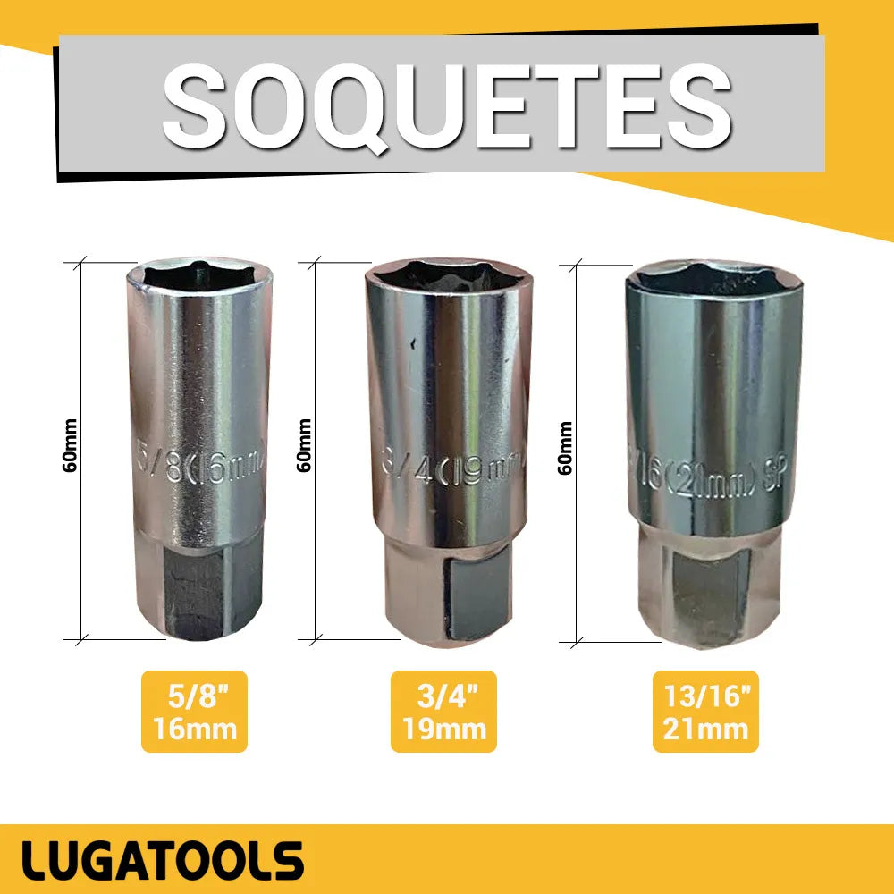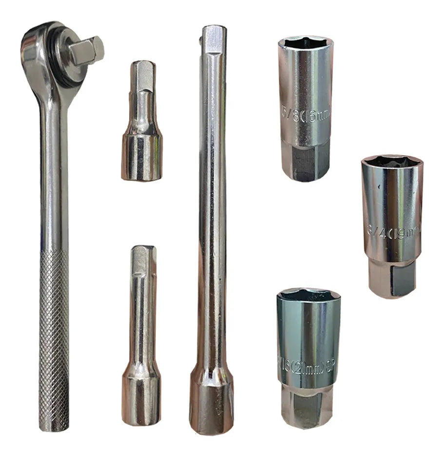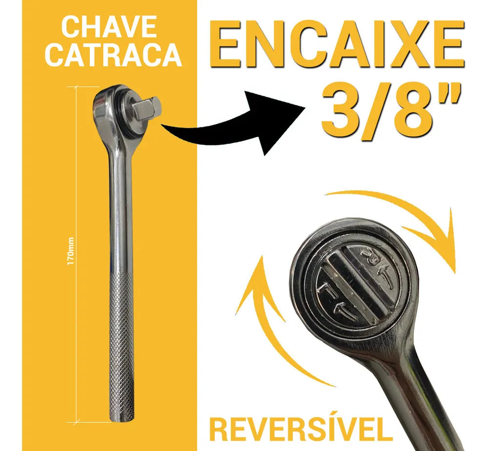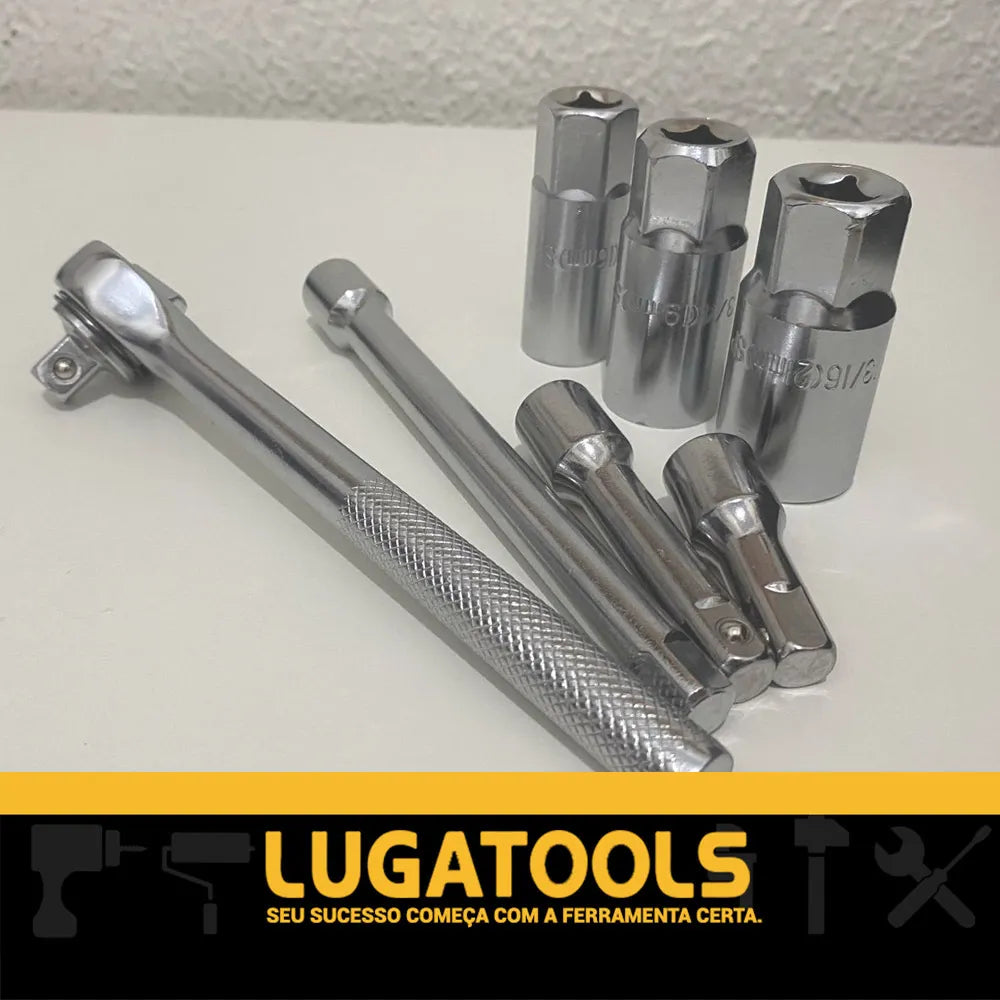 Jogo Chave Catraca e Soquete com 7 peças. Ideal para trabalhos com soquetes no aperto ou desaperto de componentes.