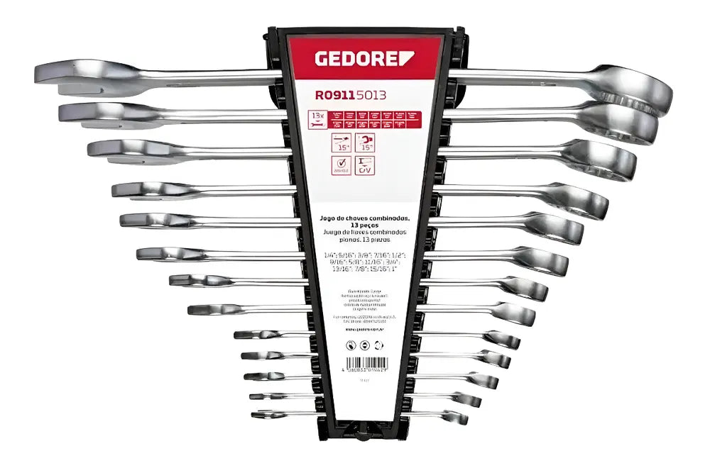 Jogo de Chave Combinada de 1/4 à 1 POL com 13 Peças R09115013 GEDORE RED