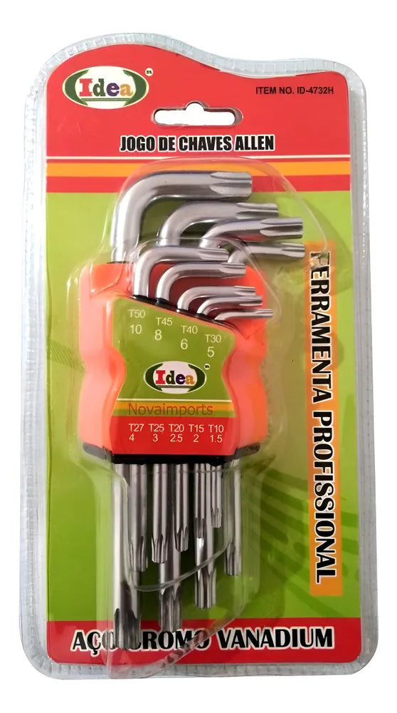 Jogo Chave Torx Tipo L Torque Tork Curta 9 Peças T10 A T50